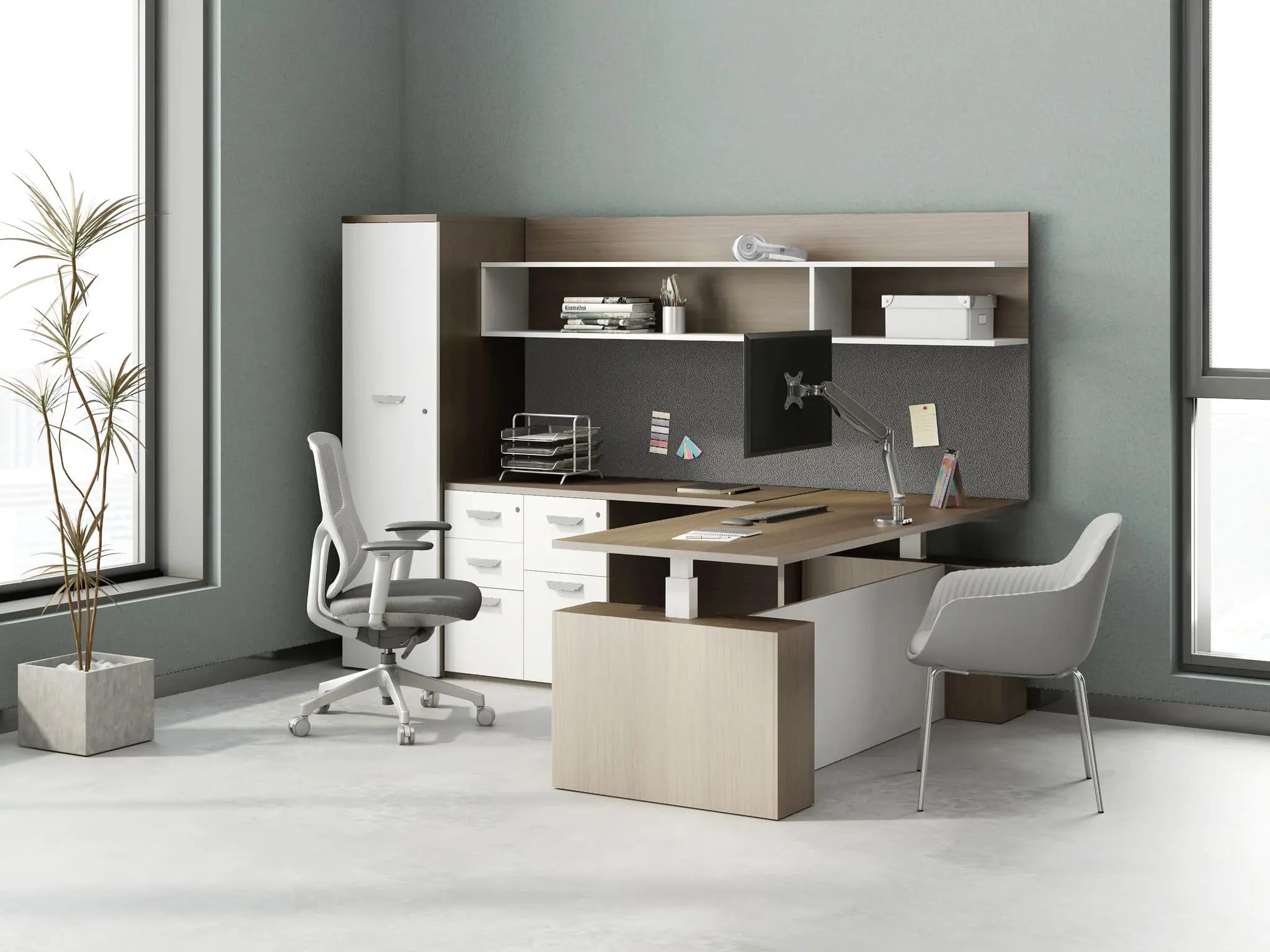 Manager U stations are used for supervisors or managers. They are higher in height with three walls, which allows the occupant privacy, whether they need to review confidential materials or have discussions with employees. Many call stations and businesses use them for their managers.