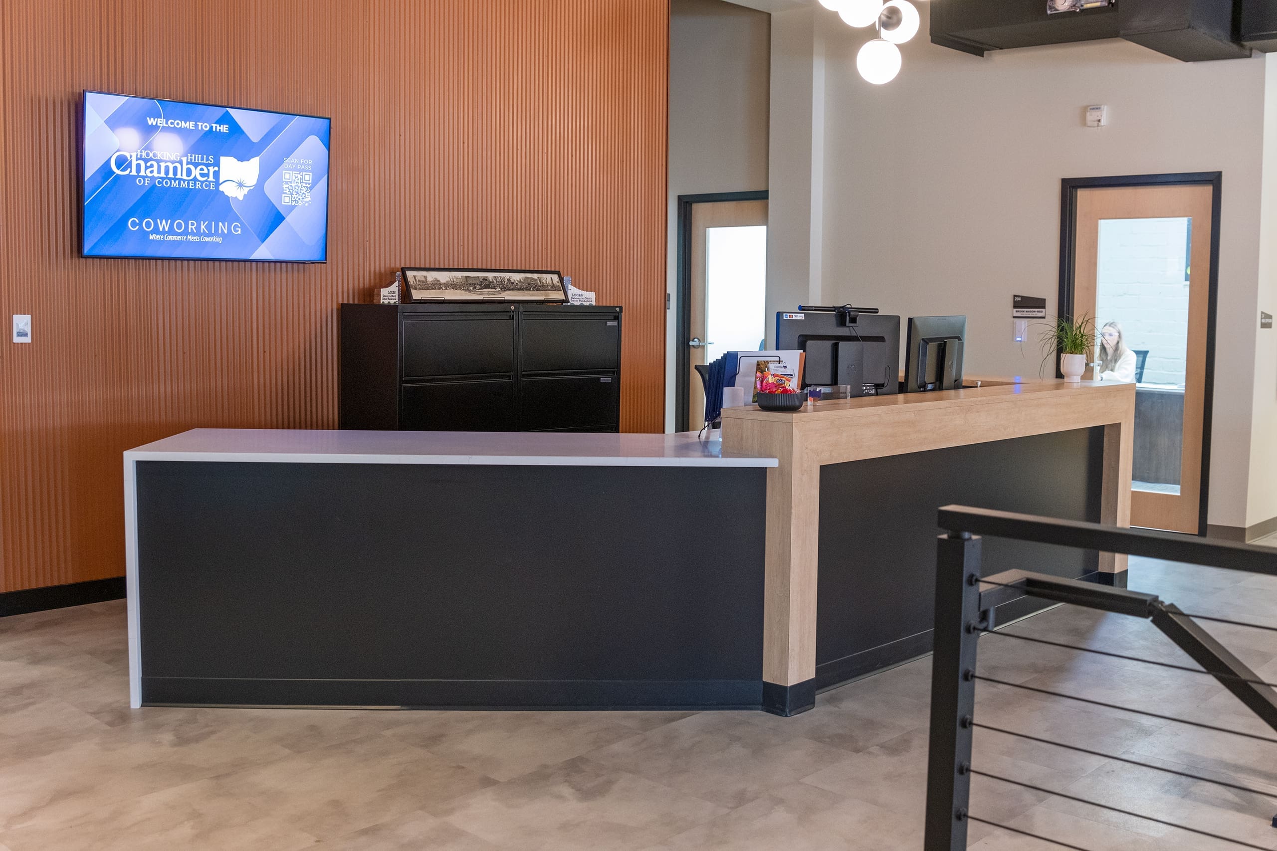 The Hocking Hills Chamber of Commerce represents businesses in Hocking County and the Hocking Hills region, advocating for local enterprises and promoting policies that foster economic growth in southeast Ohio. Recently, the Chamber embarked on an ambitious project—the launch of a first-of-its-kind coworking space in southeast Ohio. Supported by funding from the Ohio Builds grant, this innovative space required comprehensive design and furnishing to align with the Chamber’s vision of creating a professional, collaborative environment for the local business community.