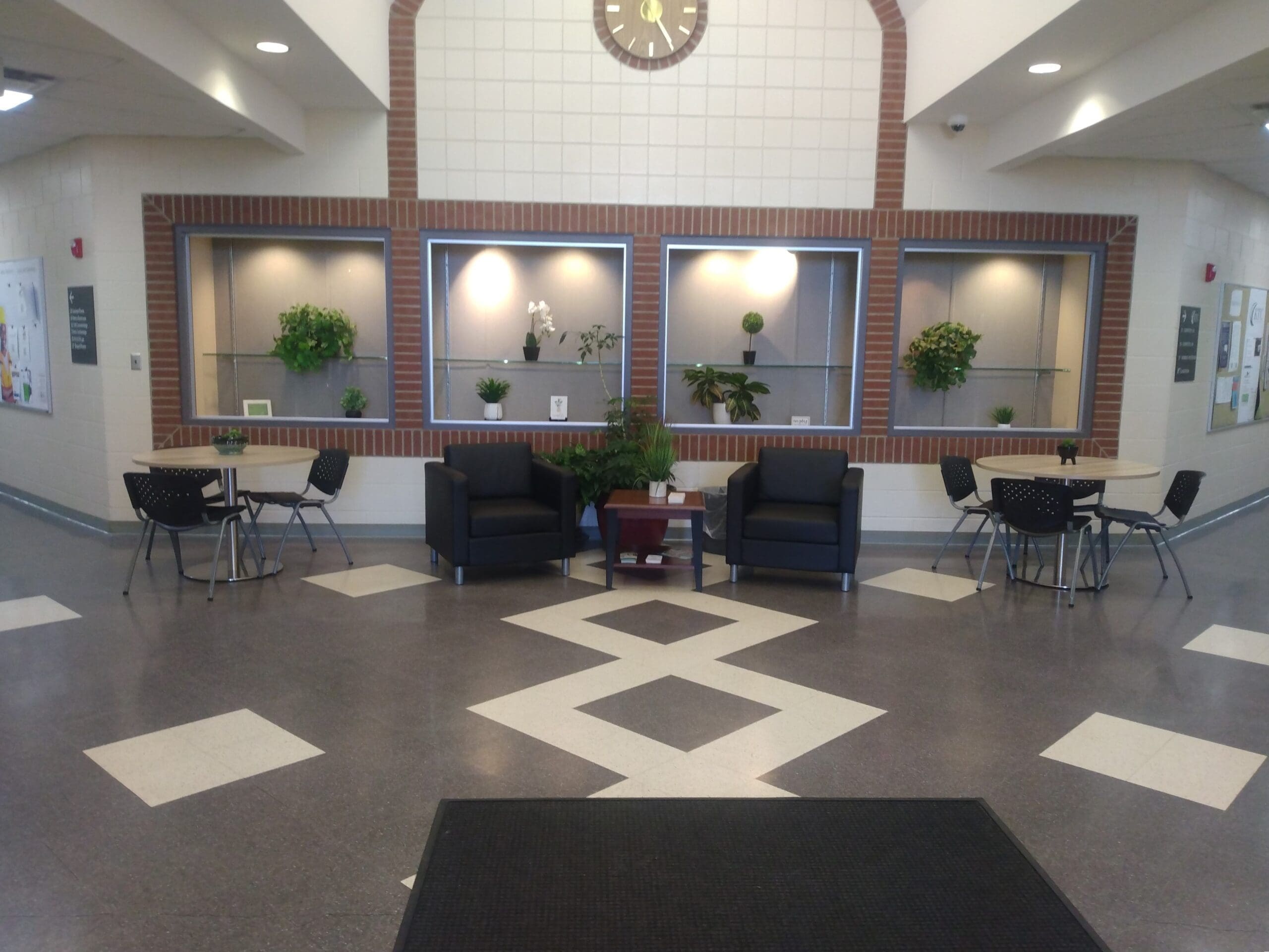 We also assisted Knox Technical Center’s Nursing department, which resides in a separate building, to update their lobby furniture. Their goal was quite opposite of the central building. They already have a collaborative lounge for students, and were just interested in modernizing their furniture, while also providing a space to display their plants and brochures. We worked alongside their administrative staff to find a solution that both accentuated their accent wall and provided timeless appeal.
