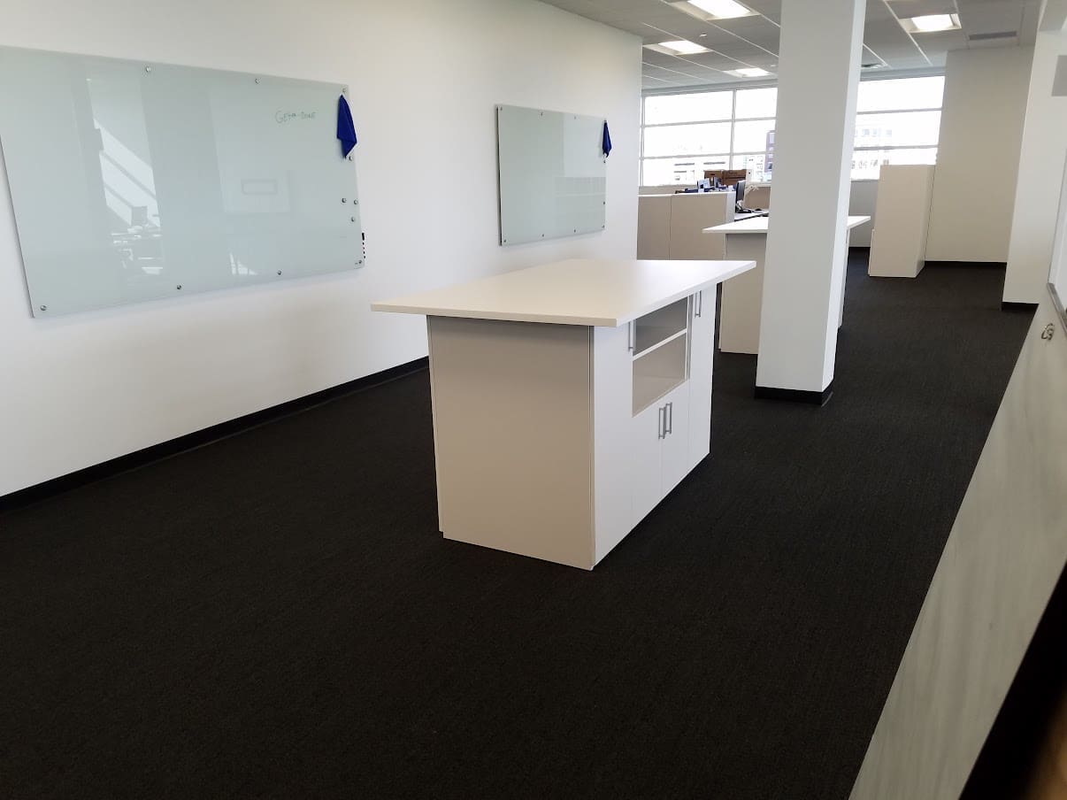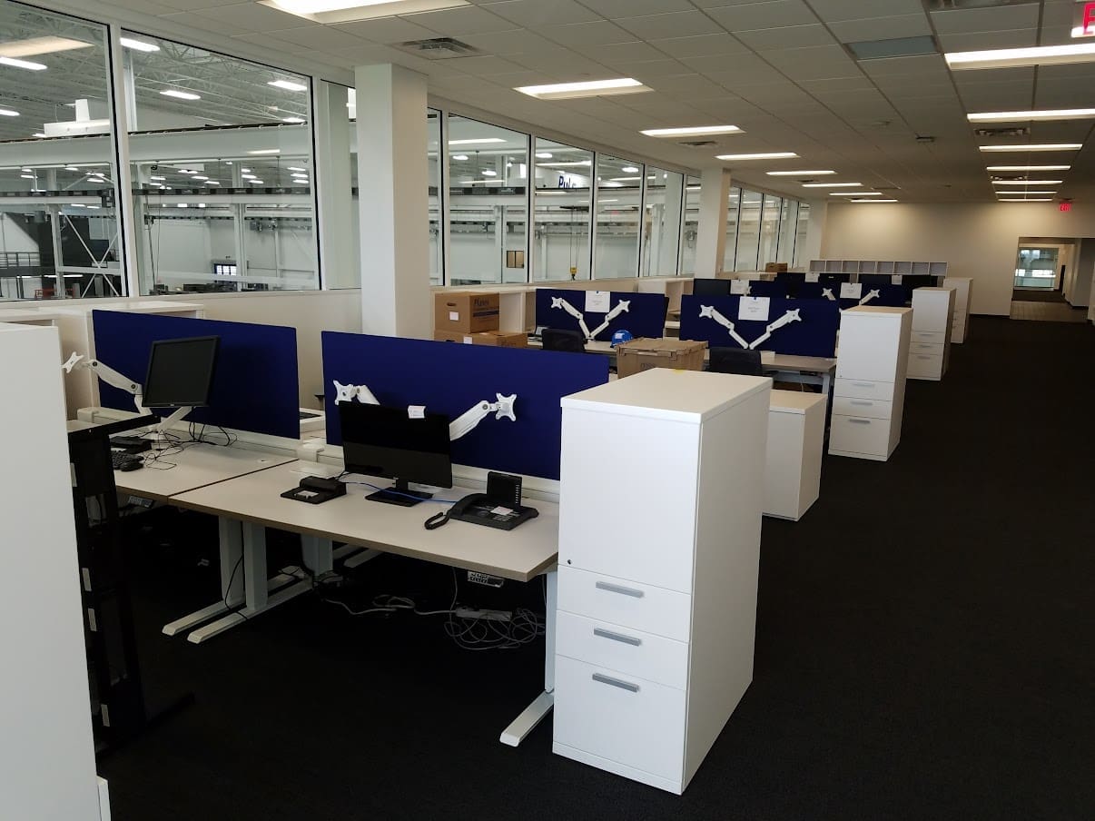 As part of its growth plan, United Grinding needed new, contemporary furniture for its 110,000 sqft North American Headquarters. We used a combination of custom furniture from IOF and cubicles from Friant to create an office that is on-brand and functional. Each workstation has ample storage and height-adjustable work surfaces to promote a healthy work style.