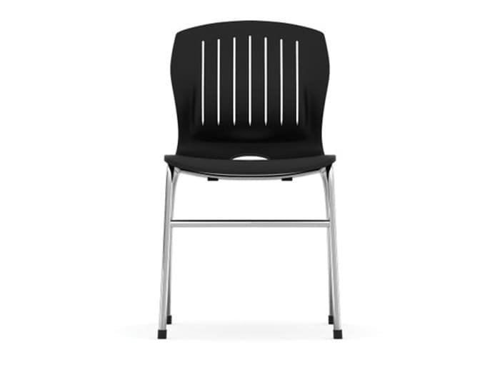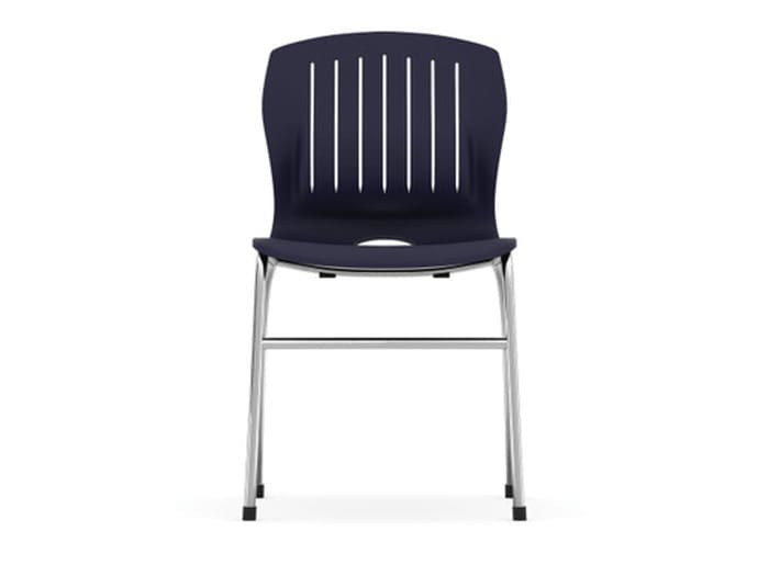The Slash Collection by OfficeSource features chairs with a durable chrome base and a range of seat color options. These chairs are low-maintenance and mostly stackable.